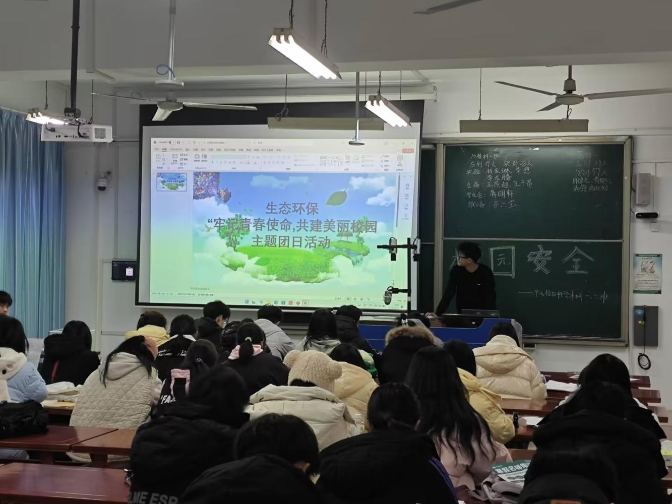 为积极响应国家生态文明建设的号召,弘扬环保理念,提高大家的环保意识,倡导绿色生活方式,2024年1月9日,beat365在线唯一官网团委组织各团支部于理工楼开展了“牢记青春使命,共建美丽中国”的主题团日活动。
