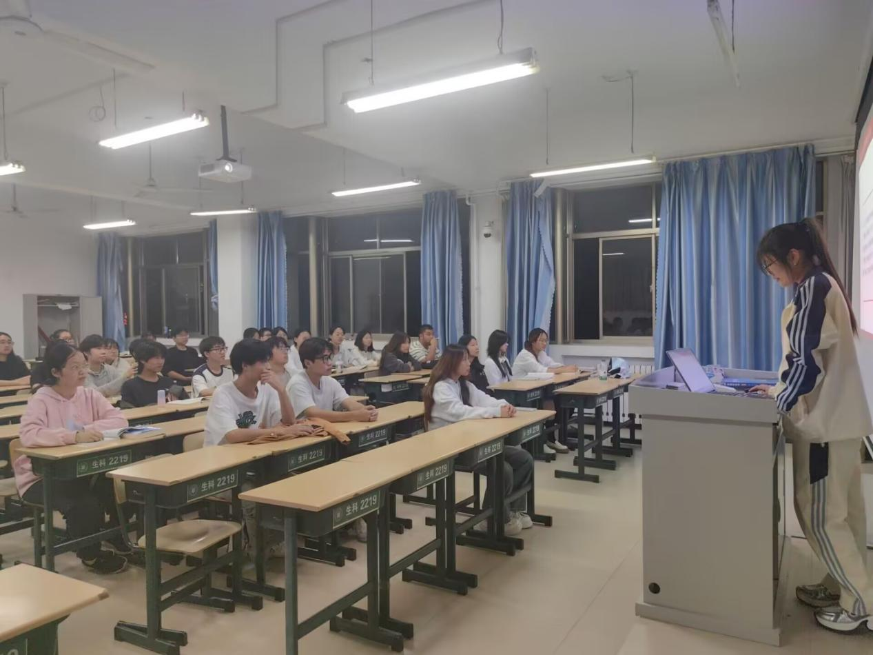 活动开始,由各班团支书通过PPT讲解带领大家学习有关就业相关内容,主要包括目前就业市场形势的严峻,就业对个人发展的影响,以及新时代青年需要承担的责任,应该为社会和国家贡献自己的一份力量,将个人奋斗与强国宏图紧密的结合在一起。随后学生代表上台分享自己对于未来就业的认识和感悟,并表示作为当代大学生应该深学细悟“青春引航,筑梦未来”的深刻内涵,用理论学习指导实践建功,为服务国家和人民贡献力量。