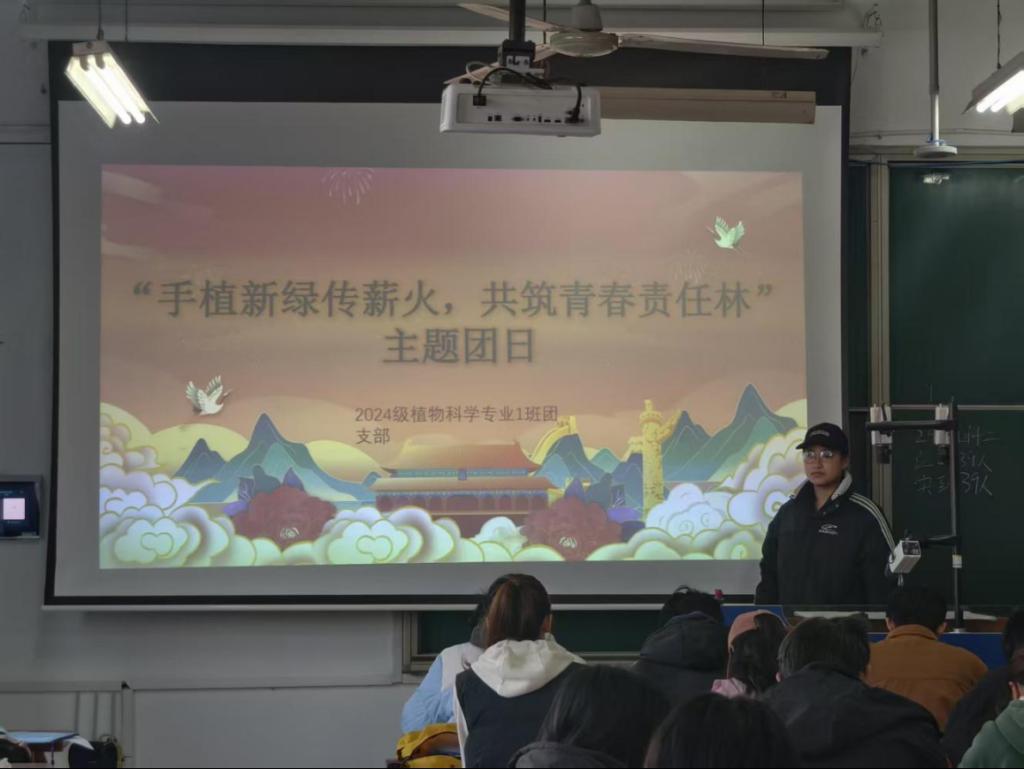 活动伊始,组织委员详细介绍活动意义,指出植树造林是践行绿色发展理念、履行社会责任的直接行动,与生命科学专业紧密相连,鼓励同学们以专业知识为依托,积极投身环保实践。随后,同学们结合自身经历,分享对环境变化的直观感受,深切体悟到守护绿色家园、参与植树造林的紧迫性与重要性。最后,团支书发起“共筑青春责任林”倡议,鼓励同学们积极参与植树实践,以实际行动为校园添绿,为环保助力。