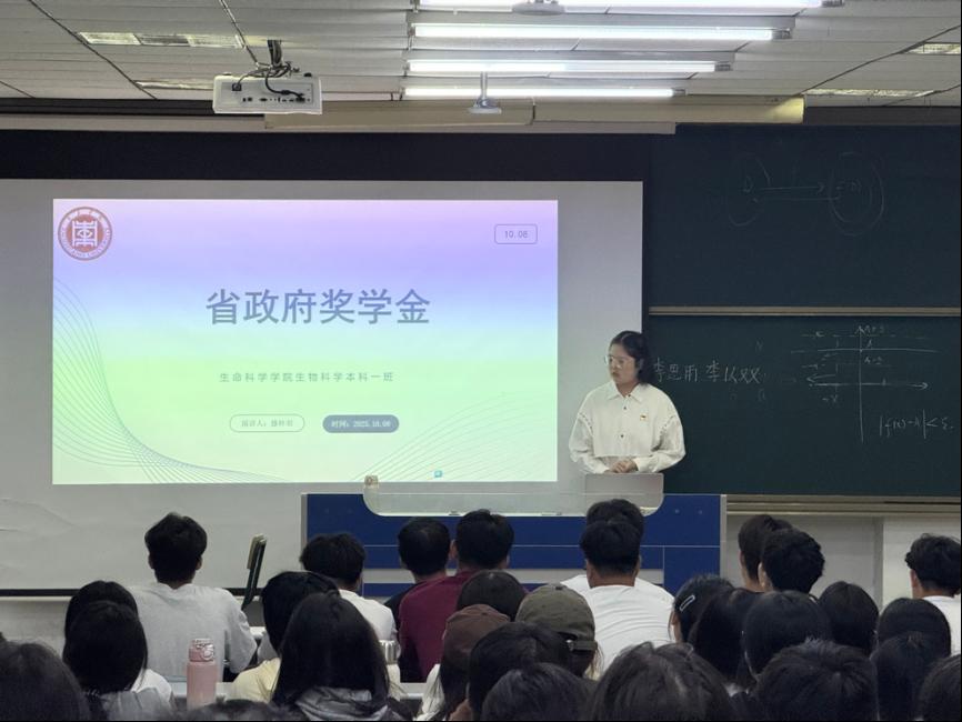 为传递优秀榜样的拼搏精神,激励新生,指引其找寻正确的发展方向,10月9日晚,beat365在线唯一官网成功举办榜样教育活动。本次活动特别邀请到获得国家奖学金学生袁雪、获得省政府奖学金学生滕梓羽担任主讲人,2025级全体新生到场聆听。
