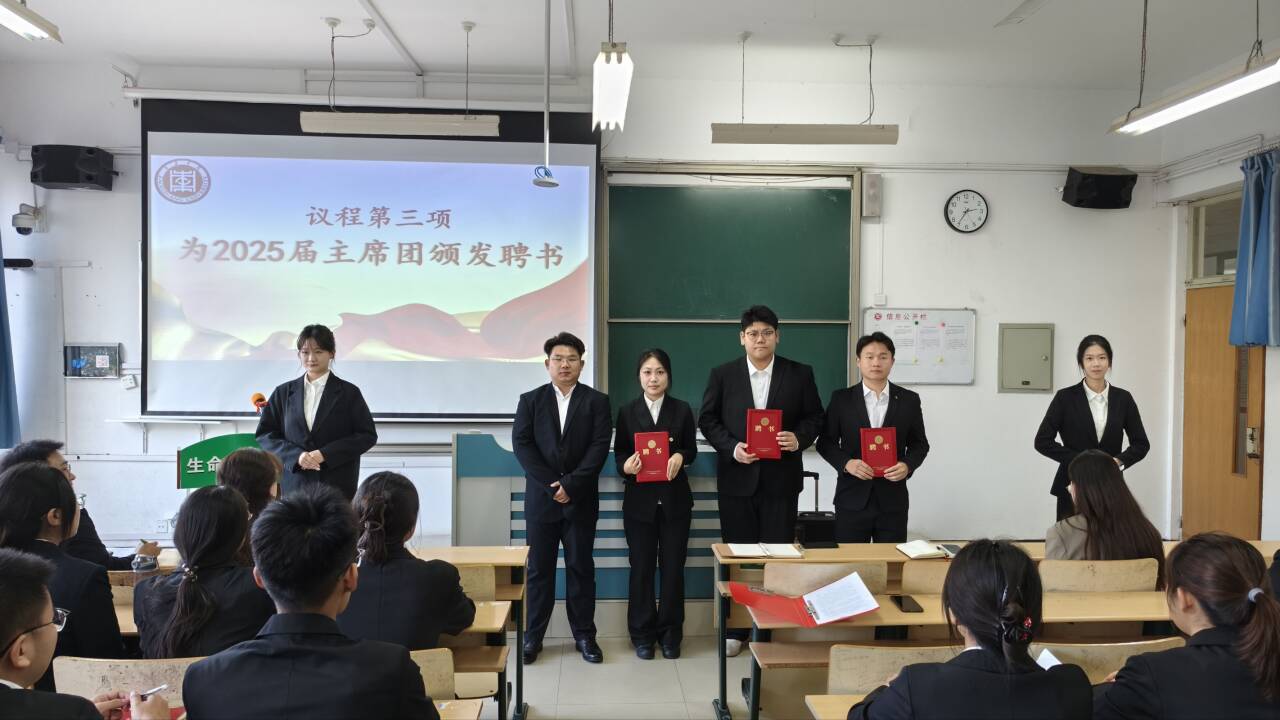 大会在国歌声中拉开帷幕。首先,学院辅导员李光晨老师宣读2025届学生会及文明自律委员会学生干部名单。随后辅导员孙士媛、褚宏宇老师为新当选的学生会和文明自律委员会主席团成员颁发聘书。新当选的学生会主席张凯扬做表态发言,代表全体学生干部郑重承诺,将始终牢记“服务同学、奉献学院”的宗旨,带领全体成员加强团结协作、提升工作效能,打造一支有担当的队伍。最后,学院党委副书记韩笑老师作总结讲话,祝贺新一届学生会、文明自律委员会成立,并对全体学生干部提出明确希望和要求,鼓励大家以饱满的热情、务实的作风投入工作,在实践中锤炼本领、增长才干。