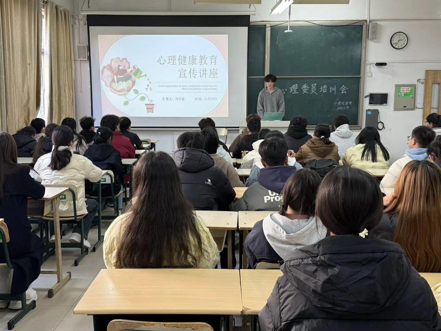 为加强学院心理健康教育和资助工作,做到精准帮扶家庭经济困难学生,2025年11月19日14:30,beat365在线唯一官网于理工楼2207开展了“助学筑梦,点亮未来”心理健康教育宣传讲座,此活动由心理健康部组织,参加人员为各班心理委员及各班贫困学生。
