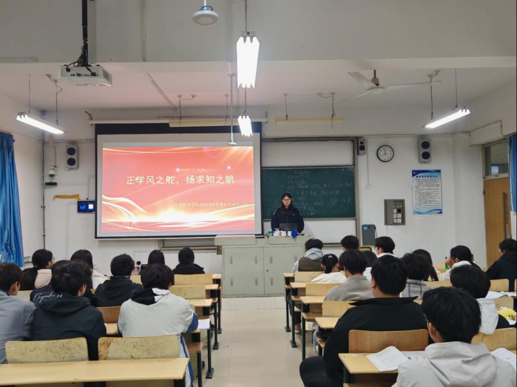 班会上,各班辅导员、班主任首先强调了优良学风的重要性,引导同学们端正学习态度,明确学习目标。活动形式多样、内容充实:优秀学生代表分享了高效学习方法与时间管理经验,为同学们提供了宝贵借鉴;在互动讨论环节,同学们围绕如何克服学习困难、激发专业兴趣等话题畅所欲言,气氛热烈;部分班级还共同商议制定了班级学习公约,倡导诚信应考、严守课堂纪律,将学风建设落到实处。